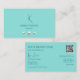 Chic Plain Teal with Monogram QR Code and Jewels Business Card