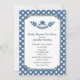 Stylish bridal shower invitation done in a slate blue and white polka dot pattern, with a decorative edged white text area. A blue, white, and yellow retro tea party design, decorates the top of the white text area. Personalise all the text to suit your tea party event. Lovely invitation the bride will cherish.