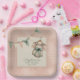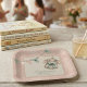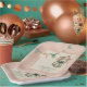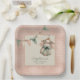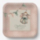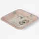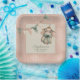 Set the table for a whimsical and elegant baby shower with these charming paper plates. The design features a hand-painted watercolor baby romper on a hanger paired with delicate sage green bunting flags and a dusty rose polka dot border. These durable plates are the perfect choice for a sophisticated garden-themed party for a new mama-to-be.