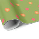 A roll of chic Wrapping Paper, with Polka Dots in shades of Pink, Orange on a Green background. The colours coordinate with the Posh & Painterly 'Poppy Fields' Collection by Judy Adamson.
