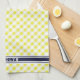 chic preppy yellow navy gingham pattern monogram tea towel