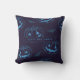 Chic and modern throw pillow with pumpkin and bat patterns in shades of blue.