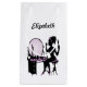 Personalise by adding the name of your recipient to this chic and stylish gift bag with a silhouette of a woman of fashion, wearing purple high healed shoes with cute bows, sitting at a vintage makeup vanity and admiring her girly fashionista reflection in a mirror.