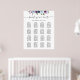 Elegant Wedding or special event seating chart with delicate purple and blue floral border and beautiful modern handwritten calligraphy elements. Easy to fill in the template with space for 16 seating tables or less. For events with fewer tables, simply erase the characters from the text boxes of bottom tables that you don't need. Many size options are available. Ability to change white "background-colour" to another colour by selecting "customise further". IMPORTANT NOTE: This sign comes in premium poster paper style, easy to frame or glue/staple to inexpensive MDF or foam board for display. If you prefer this sign prepared for display already on a foam board, please follow these easy steps: on this sign product page, scroll down, until you see a section with images called "Transfer design to a product". Use the arrow on the images to look at all the options, until you reach the "Foam Boards" option. Click on it, and it will transfer the design into a foam board for you. Initially, sometimes it transfers the design into a very big foam board size, nevertheless, you can change the sign into the size you need right there on the product page and even see how it looks already in a stand. When you add this design to your shopping cart, it will tell you the back side is blank. Don't worry about it, as this only means that the back of the sign will be white. If you need help, please send me a message and I'll get back to you as soon as possible. Part of our "Purple and Blue Blossoms" collection with a variety of coordinating products available. Visit the entire collection at: https://www.zazzle.com/collections/purple_and_blue_blossoms_collection-119752419948427787
