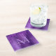 Chic Purple Dripping Glitter Brush Metal Monogram Glass Coaster