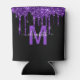 Chic Purple Dripping Glitter Monogram Name Can Cooler