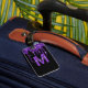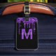 Travel in style with this custom glitter and glam luggage bag tag The elegant design features a border at the top of faux purple dripping glitter with sparkles. In the centre is your monogram initial in purple with your name in a modern hand lettered white script on a background of black. The back of the luggage tag has your name and address to personalise. Designed just for you by Extreme Tees!
