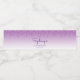 These chic 21st birthday party water bottle labels feature a sparkly purple faux glitter drip border and purple ombre background. Personalise them with her name in purple handwriting script, with her birthday and date below in sans serif font.