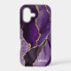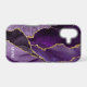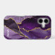 Protect your phone in style with this chic design featuring your monogram and colourful shades of purple and lavender agate with metallic gold foil veins.