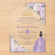 Personalise this elegant purple lilac floral Quinceañera / Quinceanera / Mis Quince Anos / Sweet 16 birthday acrylic invitation easily and quickly. Simply click the customise it further button to edit the texts, change fonts and fonts colours. Featuring exquisite purple lilac roses, a girl in a glittery lilac dress, butterflies and chic gold accents. Explore matching items available in-store to create cohesive stylish celebration! (c) Somerset Fine Paperie