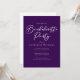 This elegant royal purple bachelorette party invitation features customized white typography for a bride who is going to have an evening event with her bridesmaids. A chic, minimalist bachelorette party invite.