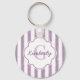 Chic Purple Painted Stripes Monogram and Name Key Ring