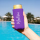 Chic Purple Personalised Name Handwritten Script Seltzer Can Cooler