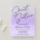 A modern purple and silver sweet 16 invitation featuring a faux glitter background and sparkle lights.