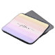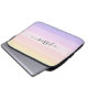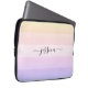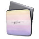 Modern laptop sleeve with a black name accented by a decorative purple striped background. Personalise with your name.