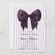 Host a memorable birthday party with this chic and modern invitation, adorned with classic lavender and white vertical stripes. A striking, deep purple bow graces the front, offering a sophisticated focal point for the celebration announcement. All necessary event information is presented in elegant typography, guiding your guests to the festivities. The back includes a convenient 'SCAN HERE' section with a QR code, streamlining the RSVP process and adding a high-tech touch to your traditional party planning. This design is perfect for anyone seeking a blend of style and ease.