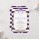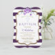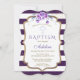 Chic Purple Stripes Gold Violet Floral Baptism Invitation