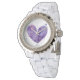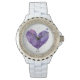 * Women's Rhinestone White Enamel Watch - * Feminine Abstract Girly Chic Purple Watercolor Splatter Heart Watch *