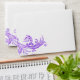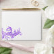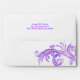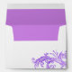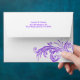 Custom special occasion invitation envelope in white, with a lavender colour inside. Elegant purple baroque flourishes decorate the front and back of the envelope. Purple coloured return address, on the back flap, is ready to personalise. Lovely finishing touch to your invitations.