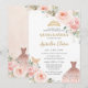 Chic Quinceañera Blush Pink Floral Dress Birthday Invitation