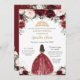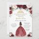 Chic Quinceañera Burgundy Blush Floral Princess Invitation