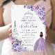 Chic Quinceañera Purple Floral Paris Eiffel Silver Invitation