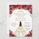 Chic Quinceañera Red Floral Princess White Dress Invitation