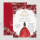 Chic Quinceañera Red Floral Roses Princess Tiara Invitation