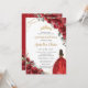 Chic Quinceañera Red Flowers Floral Brown Princess Invitation