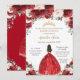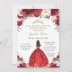 Chic Quinceañera Red Pink Floral Princess Dress Invitation