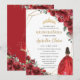 Chic Quinceañera Red Roses Flowers Floral Princess Invitation