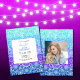 Chic Rainbow Blue Stripes Floral Photo Birthday Invitation