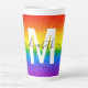 Have your morning coffee in style with this custom glitter and glam latte mug. The chic rainbow striped design includes shades of red, orange, yellow, green, blue and purple faux glitter with a monogram initial in white and name in modern black script for you to personalise. Show your pride!