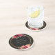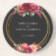 Elegant chic dark red burgundy and black wedding coaster with beautiful flowers and green leaves. An enchanting fusion of elegance and gothic charm. These beautiful invitations are in rich black and red hues. The calligraphy is elegant and chic and can be easily customised. Romantic and modern floral wedding invitations with classic colours that never go out of style.