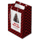 Chic red black plaid tree gift bag editable name