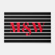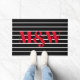 Modern chic red black and white stripes personalised custom couple monogram initials elegant Doormat