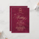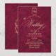 Elegant stylish red and gold modern wedding invitation with an elegant handwritten font with curls and a monogram of the bride and groom. Classy and elegant, simple and modern invitation.