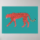Chic Red Cheetah Eastern Blue Poster