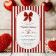 Red and white striped bridal shower invitations with a red bow design offer a festive and eye-catching way to celebrate the bride-to-be. This elegant invitation features bold vertical candy cane stripes in vibrant red and crisp white, creating a cheerful yet sophisticated backdrop. A red ribbon bow adds a charming and celebratory accent, making it perfect for bridal showers with a romantic or vintage flair. The clean, modern typography is beautifully balanced with a handwritten-style script for the guest of honour’s name, giving the layout a polished and personalised look. Ideal for festive summer events or holiday-themed bridal showers, this design brings together classic patterns and vibrant colour for a high-impact presentation that stands out. Available as printed cards or an instant digital download.