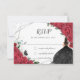 Chic Red Floral Roses Silver Quinceañera Princess RSVP Card