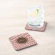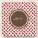 Chic red herringbone geometric patterns monogram coaster