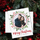 This gorgeous red holly berry Christmas wreath encircles your holiday photo inside of a circle. A chic holiday postcard for a modern couple or family. Botanical green leaves spring out of the beautiful photograph.