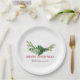 Chic Red Holly Leaves Bouquet Christmas Holiday Paper Plate