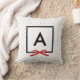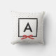Chic monogram pillow featuring a black bordered square with a red ribbon against a black and white polka dot pattern. It makes great gifts for family and friends or for yourself to decorate your home or dorm room.