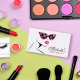 This chic and modern business card features a minimalistic but groovy illustration of a stylish woman wearing bold, retro-style polka dot sunglasses with pink frames, matching her vivid pink lips. The clean black-and-white design with pops of pink gives it an elegant and trendy aesthetic. The name is displayed in a mix of sophisticated script and bold typography, emphasizing the beauty and fashion-focused business. Perfect for hair salons, makeup artists, or beauty consultants, this design exudes confidence and flair while remaining professional. Fully customisable with your company details.