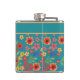 Chic Retro Floral Prints on Teal Custom Hip Flask