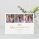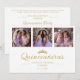 Spanish Chic Romantic Then & Now 3-Photo Twins Double Quinceañeras Celebration Faux Golden Invitation Cards. With an Elegant Princess Crown Tiara.