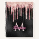 Chic rose blush, black glitter dripping monogram Notebook. Cool for school, work or as a journal or diary! To make it extra special, it is also monogrammed and personalised with name or initials or any text you like, click the "customise further" link and use the design tool to modify the design if you like.