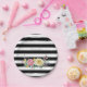 Chic Rose Floral Trendy Black Stripes and Name Paper Plate