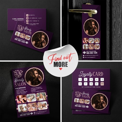 This editable Beauty Salon Postcard Template is ideal for hairstylists, makeup artists, estheticians, and other beauty professionals. The stylish purple design features a touch of glitter and a space for your photo or logo, creating a modern and eye-catching look. Customise the template with your information and services to create a unique marketing tool.